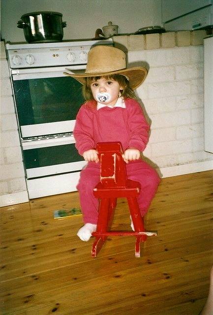 Lapsuudessani harrastin hevosten hoitoa. Ensimmäinen hoitohevoseni oli pieni ja punainen. Se oli tehty puusta ja se liikkui keinuen. Rakastin tuota söpöä olentoa. Harjasin, rapsuttelin, pussasin. Ja yöksi sidoin pikkuhevosen rapun pylvääseen, ettei se vahingossa karkaisi.