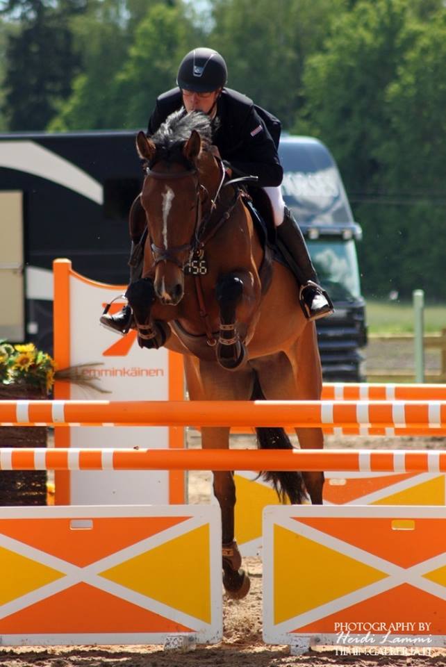 En häst som äntligen fick ta sitt första lilla hinder, en häst som fortfarande måste kontrolleras.